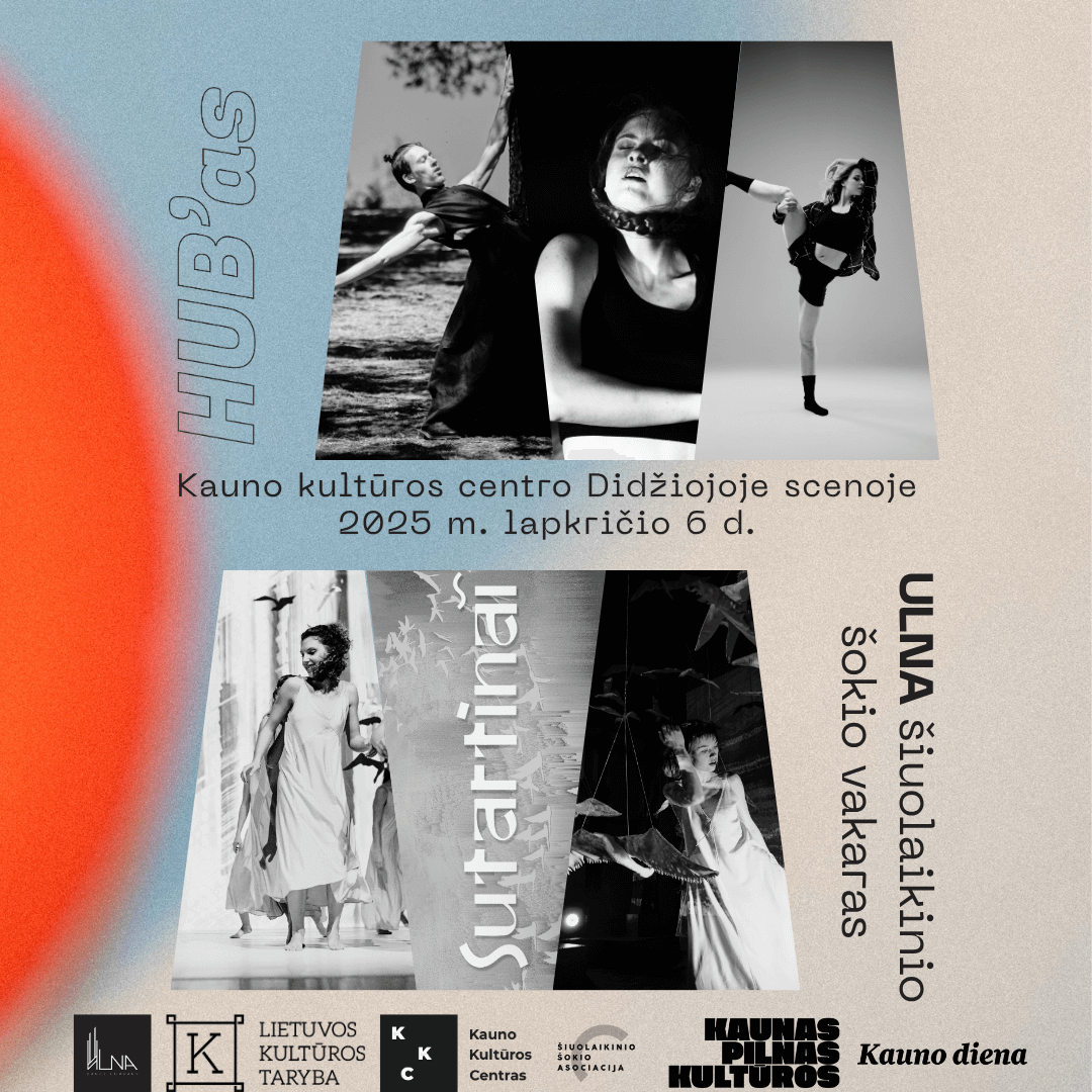 Šių metų jubiliejų pažymime vienu iš specialių renginių, HUB’as – Jaunųjų kūrėjų eskizų vakaras, kuriame savo darbus pristatys trys jauni choreografai. Antroje renginio dalyje išvysite sceninį tarpdisciplininį reginį SUTARTINAI. Tai kvietimas švęsti kartu – patirti šokį kaip gyvą, jautrų ir visiems atvirą meninį pokalbį.