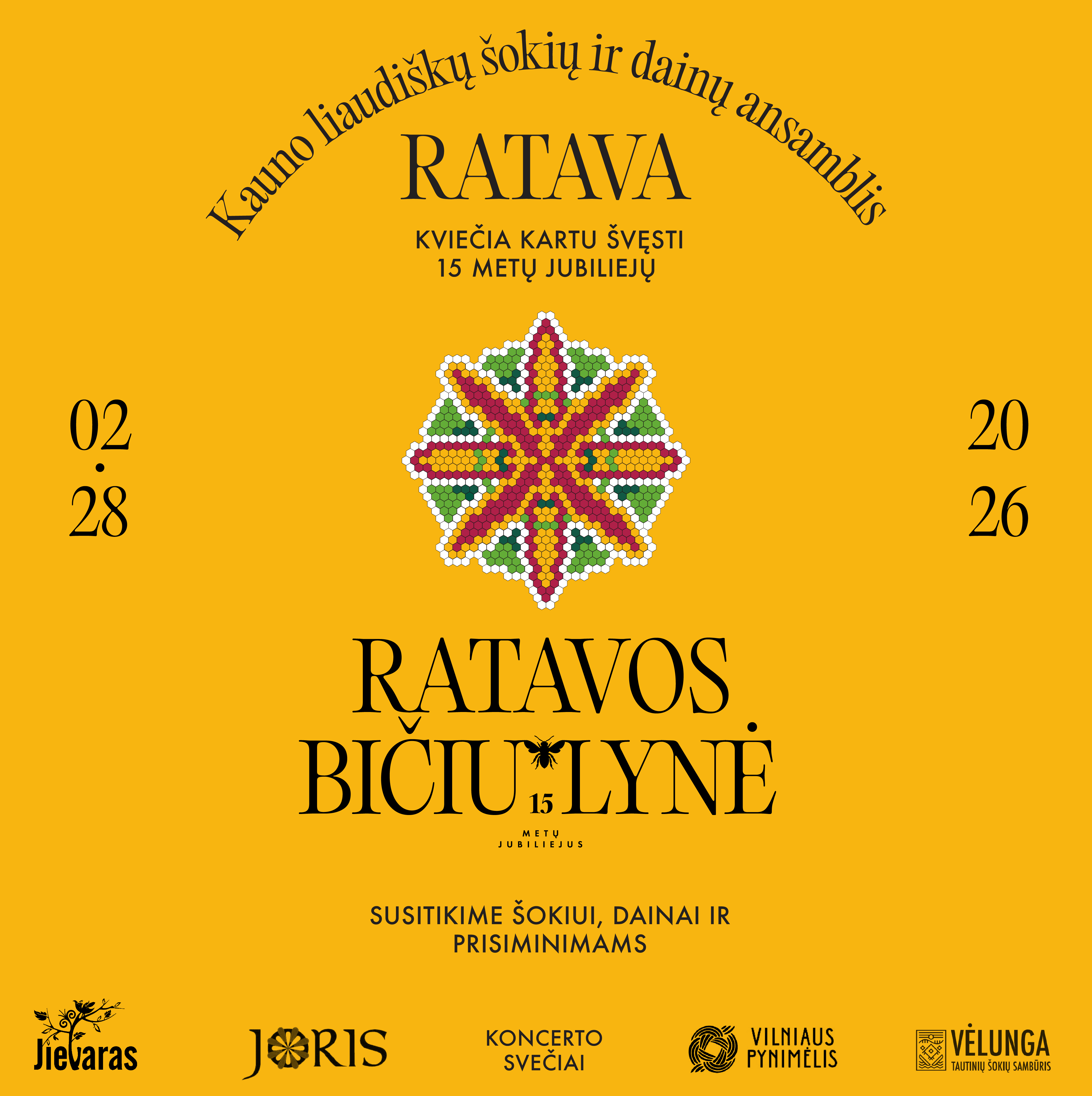 Koncerto svečiai: Vilniaus universiteto alumni dainų ir šokių ansamblis 𝗝𝗶𝗲𝘃𝗮𝗿𝗮𝘀 Vilniaus miesto liaudiškų šokių grupė 𝗝𝗼𝗿𝗶𝘀 Vilniaus miesto savivaldybės Kirtimų kultūros centro tautinių šokių ansamblis 𝗩𝗶𝗹𝗻𝗶𝗮𝘂𝘀 𝗣𝘆𝗻𝗶𝗺𝗲̇𝗹𝗶𝘀 Klaipėdos miesto kultūros centro Žvejų rūmų tautinių šokių sambūris 𝗩𝗲̇𝗹𝘂𝗻𝗴𝗮