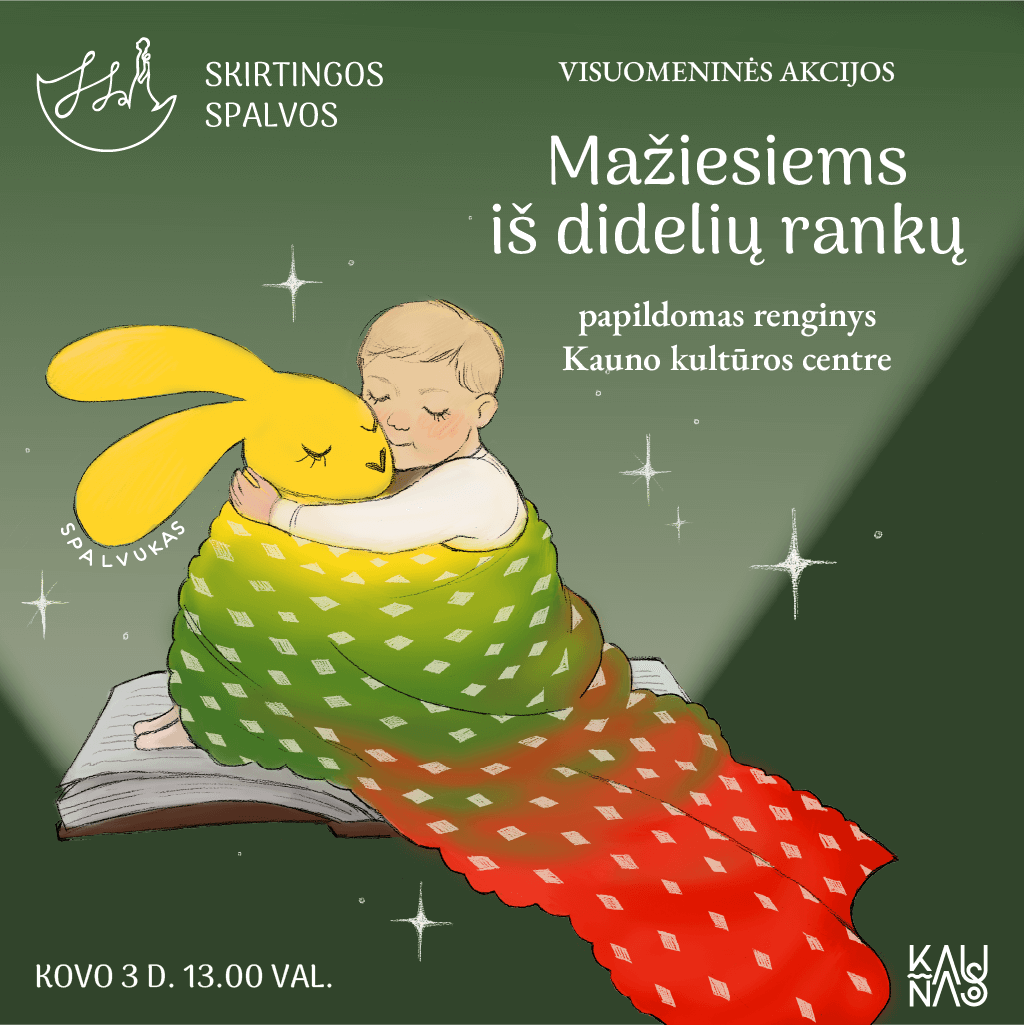 Kauno miesto savivaldybės administracija ir Kauno kultūros centras kartu su VšĮ „Skirtingos spalvos“ kovo 3-ąją dieną, kviečia kauniečius, negalinčius sudalyvauti kovo 11-osios renginyje Vilniuje, prisijungti prie visuomeninės akcijos „Mažiesiems iš didelių rankų“ Kaune.